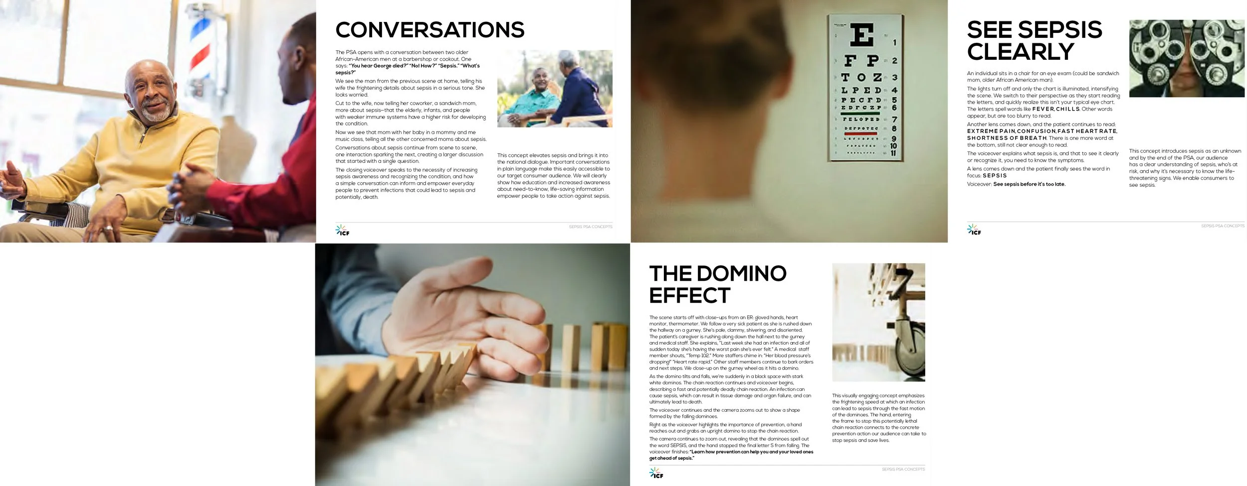 Storyboard scenes from the ‘Domino Effect’ PSA—each frame reinforces urgency and action.